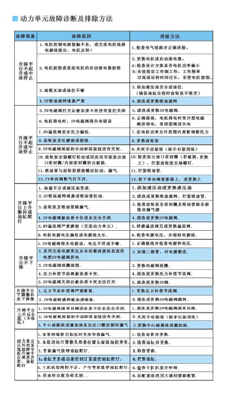 動力單元故障原因及處理